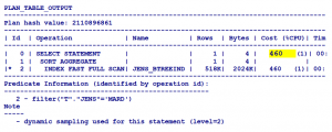 SQL> explain plan for select count(*) from milad.karbaran t where t.jens=’MARD’;